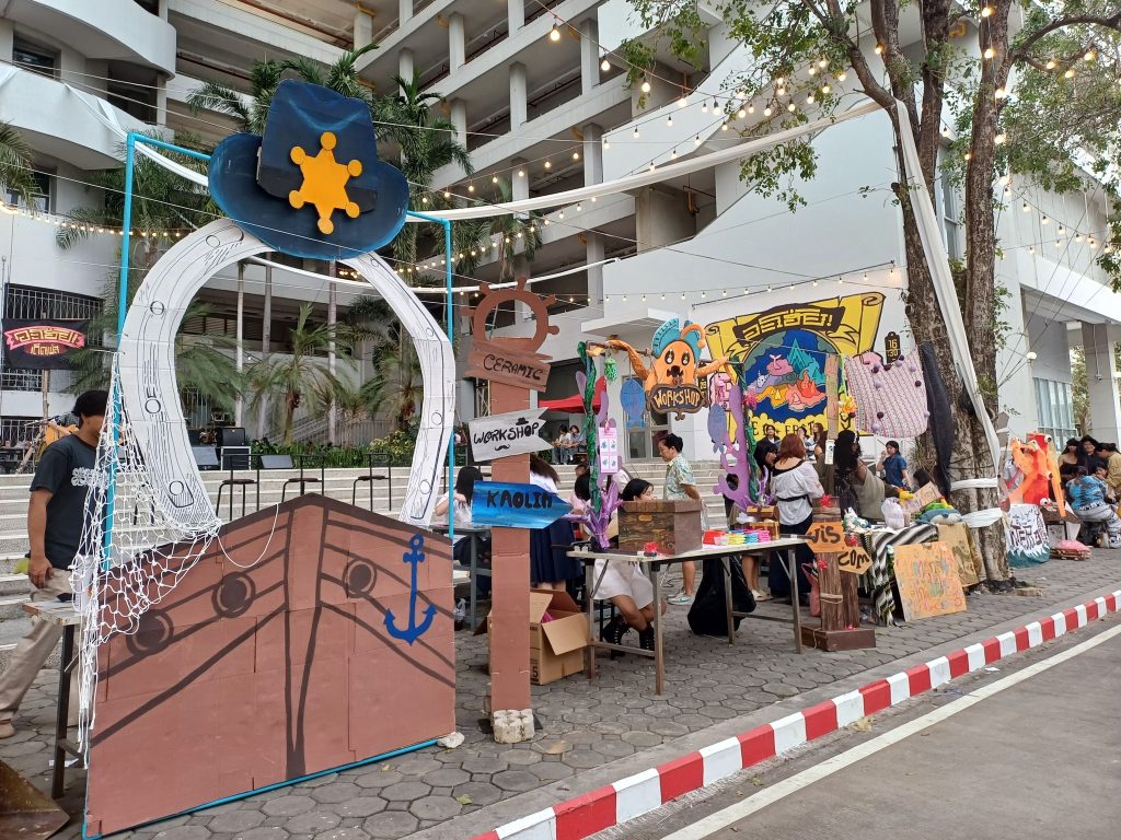 นอกจากนี้ยังมีการออกร้านจำหน่ายผลงานศิลปะและสินค้าสร้างสรรค์ ที่สะท้อนถึงความสามารถและความตั้งใจของนักศึกษาในการพัฒนาผลงานสู่เชิงพาณิชย์ เพื่อสร้างรายได้และเป็นการต่อยอดการเรียนรู้อย่างมีคุณภาพ ทั้งยังเป็นการเสริมสร้างทักษะในการทำงานร่วมกันระหว่างนักศึกษา คณาจารย์ หน่วยงานภายในมหาวิทยาลัย และภาคีเครือข่ายจากภายนอก