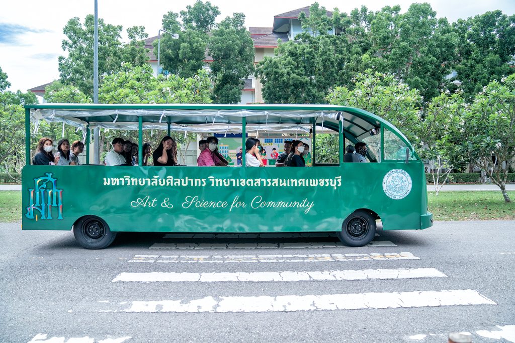 เพื่ออำนวยความสะดวกและลดการใช้รถยนต์ส่วนบุคคล อำนวยความสะดวกในการเดินทางไปยังส่วนต่าง ๆ ของพื้นที่มหาวิทยาลัย เช่น อาคารเรียน อาคารสำนักงาน ห้องสมุด หอพัก และพื้นที่บริการนักศึกษา จากจุดจอดรวม 19 จุด ครอบคลุมพื้นที่ภายในวิทยาเขตสนามจันทร์ โดยให้บริการเส้นทางตามแผนที่ และ จุดจอด 8 จุด ครอบคลุมพื้นที่ภายในวิทยาเขตสารสนเทศเพชรบุรี