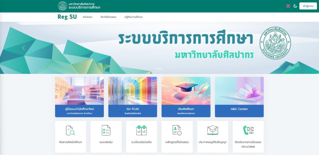 มหาวิทยาลัยศิลปากรพัฒนาระบบสารสนเทศเพื่อการจัดการศึกษาหรือ Reg SU เพื่อสนับสนุนการดำเนินงานด้านการบริหารจัดการข้อมูลนักศึกษา การลงทะเบียนเรียน การประเมินผล และการออกเอกสารทางการศึกษาในรูปแบบดิจิทัลอย่างครบวงจร ระบบดังกล่าวช่วยลดการใช้กระดาษและพลังงานจากการพิมพ์เอกสาร รวมถึงลดการเดินทางของนักศึกษาและบุคลากรในการติดต่อราชการ เนื่องจากสามารถดำเนินการผ่านระบบออนไลน์ได้ทุกที่ทุกเวลา ภายใต้แนวคิด “Anytime Anywhere” ส่งผลให้เกิดการใช้ทรัพยากรอย่างคุ้มค่า สนับสนุนแนวทางการจัดการพลังงานและสิ่งแวดล้อมอย่างยั่งยืนของมหาวิทยาลัย