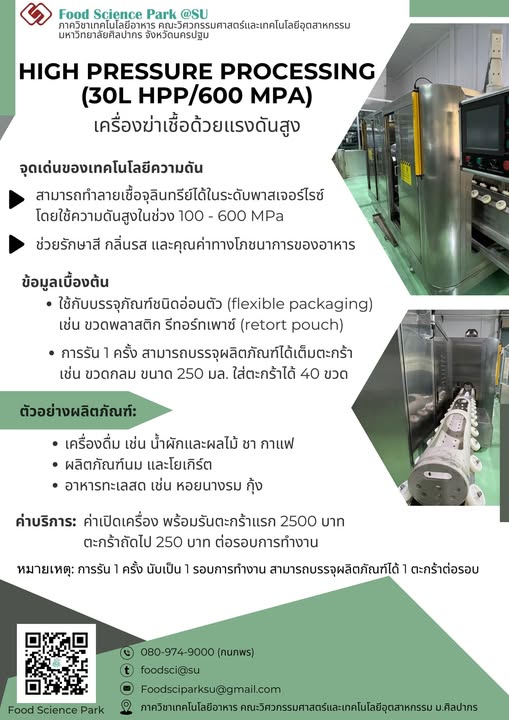 ภาควิชาเทคโนโลยีอาหาร คณะวิศวกรรมศาสตร์และเทคโนโลยีอุตสาหกรรม มหาวิทยาลัยศิลปากร ประกาศเปิดให้บริการเครื่องมือเทคโนโลยีการแปรรูปอาหารสำคัญ