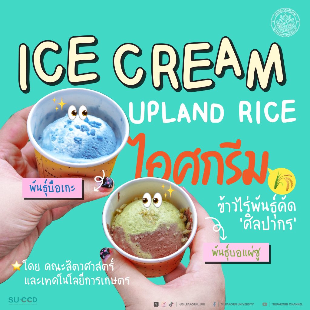 คณะสัตวศาสตร์และเทคโนโลยีการเกษตร มหาวิทยาลัยศิลปากร ได้พัฒนาโครงการวิจัย “ไอศกรีมข้าวไร่” อันเป็นผลงานจากโครงการวิจัยเชิงสร้างสรรค์ โดยเกิดจากความร่วมมือกับเกษตรกรในพื้นที่จังหวัดปากช่อง ภายใต้วิสาหกิจชุมชนอนุรักษ์ข้าวหัวหิน โดยมีวัตถุประสงค์เพื่อยกระดับคุณค่าของข้าวไร่ ซึ่งเป็นข้าวท้องถิ่นที่ไม่เป็นที่นิยม ให้สามารถสร้างมูลค่าเพิ่มผ่านผลิตภัณฑ์อาหารที่มีคุณภาพ ปลอดภัย และสะท้อนอัตลักษณ์ทางวัฒนธรรมและภูมิศาสตร์ของพื้นที่