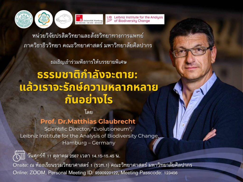 เมื่อวันที่ 11 ตุลาคม 2567 คณะวิทยาศาสตร์ มหาวิทยาลัยศิลปากร ได้จัดกิจกรรมบรรยายพิเศษในหัวข้อ “ธรรมชาติกำลังจะตาย: แล้วเราจะรักษ์ความหลากหลายกันอย่างไร” (The Silent Death of Nature – How We Can Save Biodiversity and Ourselves)
