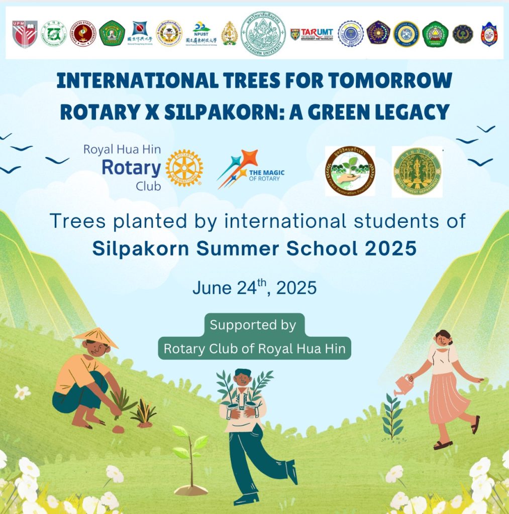 เมื่อวันที่ 24 มิถุนายน 2568 คณะสัตวศาสตร์และเทคโนโลยีการเกษตร มหาวิทยาลัยศิลปากร ได้จัดโครงการปลูกป่า “Rotary X Silpakorn: A Green Legacy” ภายใต้โครงการ International Summer School 2025 โดยมีวัตถุประสงค์เพื่อส่งเสริมการปลูกและฟื้นฟูพื้นที่สีเขียว ลดผลกระทบต่อสิ่งแวดล้อม ตลอดจนสนับสนุนการแลกเปลี่ยนทางวิชาการและวัฒนธรรมระหว่างนักศึกษาต่างชาติ อีกทั้งยังมุ่งสร้างความตระหนักด้านการอนุรักษ์สิ่งแวดล้อมและการใช้ทรัพยากรธรรมชาติอย่างยั่งยืน