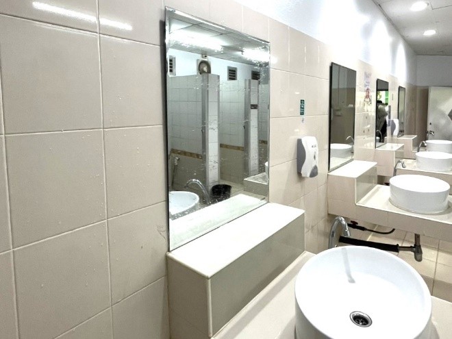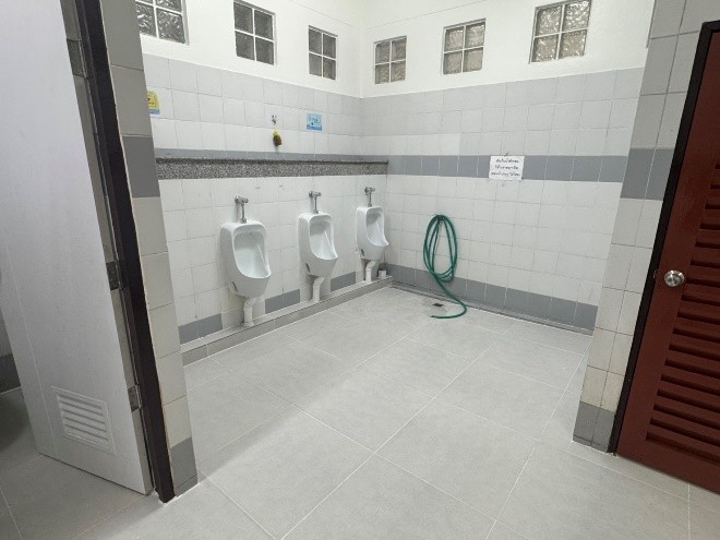 ปัจจุบัน ได้มีการติดตั้งอุปกรณ์สุขภัณฑ์ประหยัดน้ำในห้องน้ำทั่วทั้งมหาวิทยาลัย คิดเป็นค่าเฉลี่ยประมาณ 81.2% ของจำนวนสุขภัณฑ์ทั้งหมด ส่งผลให้ในระยะเวลา 1 ปีที่ผ่านมา มหาวิทยาลัยสามารถลดการใช้น้ำประปาได้ถึง 64,511 ลูกบาศก์เมตร