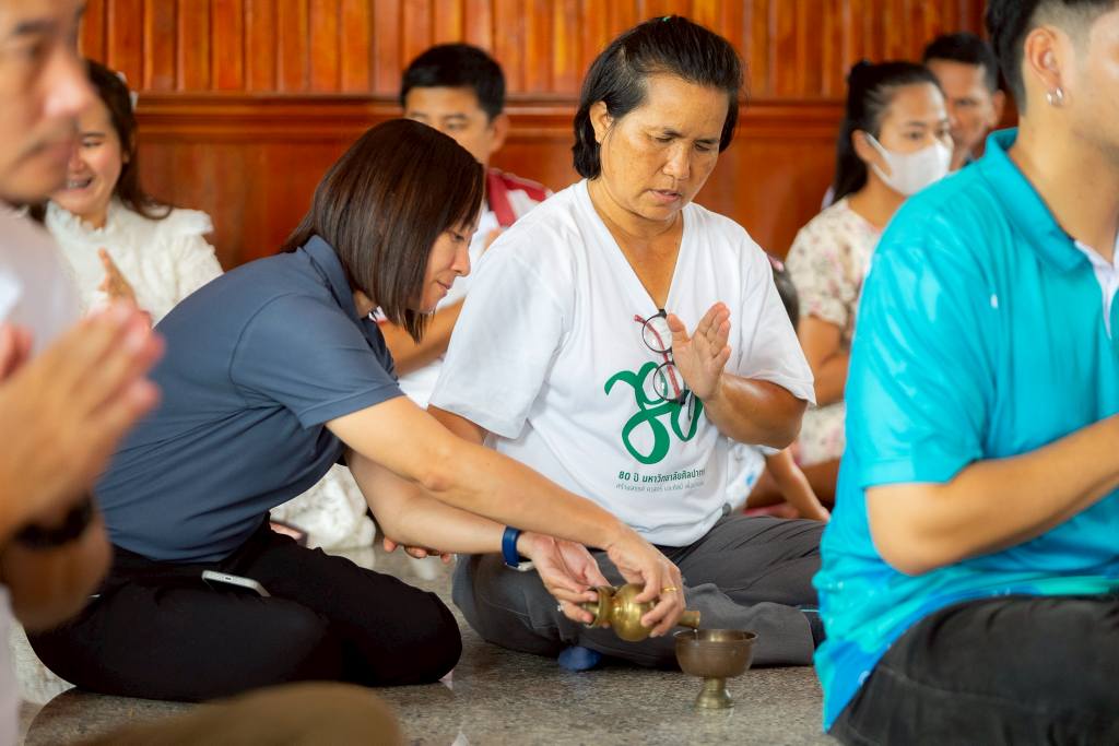 โครงการ “ถวายเทียนพรรษา” ประจำปี 2568 เพื่อสืบสานพระพุทธศาสนาและวัฒนธรรมไทย เมื่อวันที่ 9 กรกฎาคม 2568 กองงานวิทยาเขตเพชรบุรี มหาวิทยาลัยศิลปากร จัดโครงการ “ถวายเทียนพรรษา” ประจำปี 2568 โดยมีวัตถุประสงค์เพื่อส่งเสริมพระพุทธศาสนาและสืบสานประเพณีอันดีงามของไทยในเทศกาลเข้าพรรษา อันเป็นช่วงเวลาแห่งการปฏิบัติธรรมและเสริมสร้างคุณธรรมจริยธรรมในสังคมไทย ในโอกาสนี้ ผู้บริหาร บุคลากร และผู้แทนนักศึกษาจากวิทยาเขตเพชรบุรี ได้ร่วมกันถวายเทียนพรรษา พร้อมด้วยจตุปัจจัยและเครื่องไทยธรรมแด่ พระครูจิรพัฒนาทร จิรธมฺโม เจ้าอาวาสวัดหนองหงษ์พัฒนา อำเภอชะอำ จังหวัดเพชรบุรี และคณะสงฆ์ เพื่อเป็นพุทธบูชาและสืบสานขนบธรรมเนียมประเพณีไทยที่ทรงคุณค่า กิจกรรมในครั้งนี้สะท้อนถึงความร่วมมือร่วมใจในการทำนุบำรุงพระพุทธศาสนา และปลูกฝังจิตสำนึกในการอนุรักษ์วัฒนธรรมประเพณีไทยให้คงอยู่สืบไป ที่มา : https://www.facebook.com/share/p/19UCQmdjCY/
