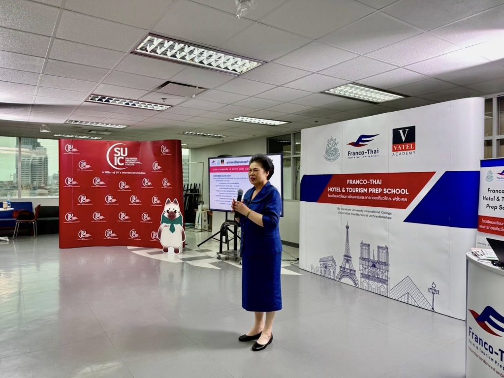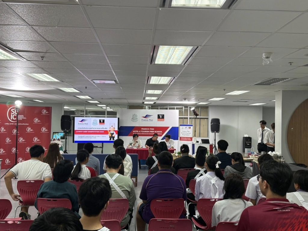 การแข่งขันทำอาหารและเครื่องดื่ม “Le Petit Chef Competition 2025” เมื่อวันที่ 8 พฤษภาคม 2568 โรงเรียนเตรียมอุดมศึกษาการโรงแรมและการท่องเที่ยวไทย-ฝรั่งเศส วิทยาลัยนานาชาติ มหาวิทยาลัยศิลปากร ประสบความสำเร็จในการเป็นเจ้าภาพจัดการแข่งขันทำอาหารและเครื่องดื่ม “Le Petit Chef Competition 2025” ณ อาคารเอ็นที ทาวเวอร์ เขตบางรัก โดยได้รับเกียรติจากผู้ช่วยศาสตราจารย์ ดร.สมพิศ ขัตติยพิกุล คณบดีวิทยาลัยนานาชาติ และรักษาการผู้อำนวยการโรงเรียนฯ เป็นประธานในพิธีมอบรางวัล บรรยากาศภายในงานเต็มไปด้วยความอบอุ่น แรงสนับสนุน และพลังสร้างสรรค์จากผู้เข้าร่วมทุกฝ่าย โรงเรียน ฯ ขอแสดงความยินดีกับทุกทีมที่ได้รับรางวัล และขอขอบคุณนักเรียนทุกคนที่แสดงออกถึงความมุ่งมั่น ความสามารถ และความตั้งใจอย่างยอดเยี่ยมตลอดการแข่งขันครั้งนี้ ที่มา : https://www.facebook.com/share/p/1HhWotfKd2/