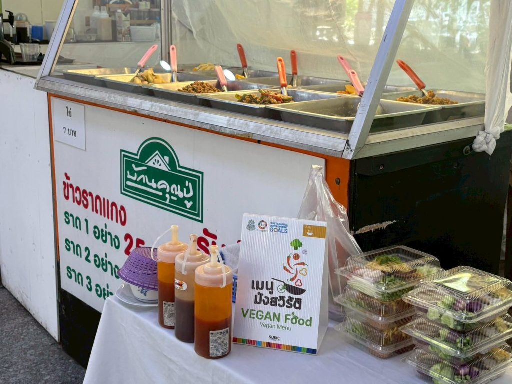 สำนักงานบริหารการวิจัย นวัตกรรมและการสร้างสรรค์ ร่วมกับ กองกิจการนักศึกษาและกองงานวิทยาเขตพระราชวังสนามจันทร์ มหาวิทยาลัยศิลปากร ได้ส่งเสริมความมั่นคงทางอาหารภายในมหาวิทยาลัย ตามเป้าหมายการพัฒนาที่ยั่งยืน หรือ Sustainable Development Goals โดยเฉพาะอย่างยิ่ง SDG 2 ขจัดความหิวโหย ผ่านการดำเนินการจัดให้มีร้านค้าจำหน่ายอาหารมังสวิรัติในโรงอาหารทุกโรงอาหารในมหาวิทยาลัย พร้อมทั้งกำหนดให้มีเมนูมังสวิรัติประจำทุกวัน เพื่อสร้างหลักประกันว่า ทุกคนในมหาวิทยาลัยสามารถเข้าถึงทางเลือกอาหารที่เพียงพอ ปลอดภัย เป็นมิตรกับสิ่งแวดล้อม และเหมาะสมกับความต้องการด้านโภชนาการที่หลากหลาย ร้านค้าที่เข้าร่วมจำนวน 5 ร้านค้า ได้แก่