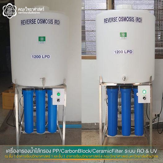 น้ำดื่มภายในมหาวิทยาลัยศิลปากร ใช้ระบบการกรองแบบ RO หรือ Reverse Osmosis คือ การกรองแบบออสโมซิสย้อนกลับผ่านเยื่อกรอง โดยหลักการกรองน้ำของระบบ RO เริ่มต้นโดยการใช้แรงดันให้น้ำผ่านเยื่อเมมเบรน (Membrane) ที่มีรูพรุนขนาดเล็กถึง 0.0001 ไมครอน ซึ่งสามารถกำจัดสารเคมี โลหะหนัก แบคทีเรีย และสิ่งปนเปื้อนต่าง ๆ ได้อย่างมีประสิทธิภาพ