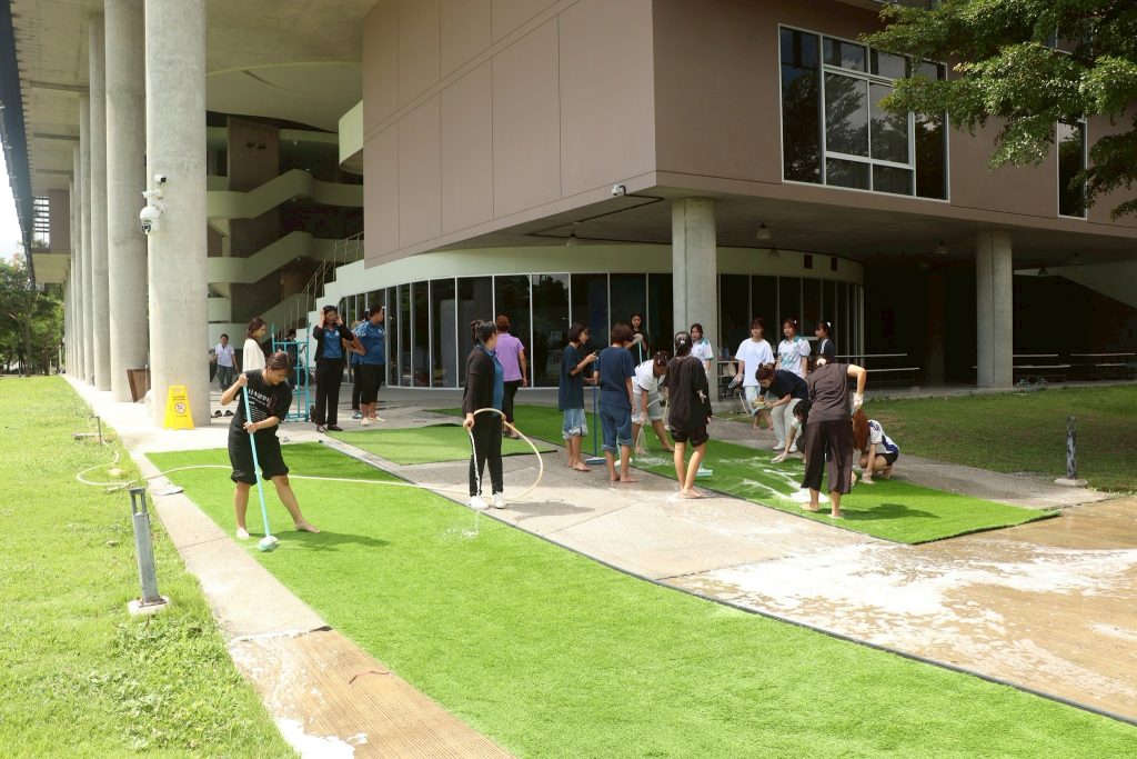 นอกจากนี้ องค์การนักศึกษายังได้นำทีมพัฒนาโรงเรียน โดยร่วมทำความสะอาดและทาสีสนามเด็กเล่น เพื่อปรับปรุงสภาพแวดล้อมการเรียนรู้ของน้อง ๆ โครงการดังกล่าวไม่เพียงเสริมสร้างความสามัคคีและจิตสาธารณะ แต่ยังสะท้อนบทบาทขององค์การนักศึกษาในการจัดกิจกรรมทางสังคมที่ส่งเสริมการเรียนรู้นอกห้องเรียนและการมีส่วนร่วมอย่างยั่งยืนกับชุมชน