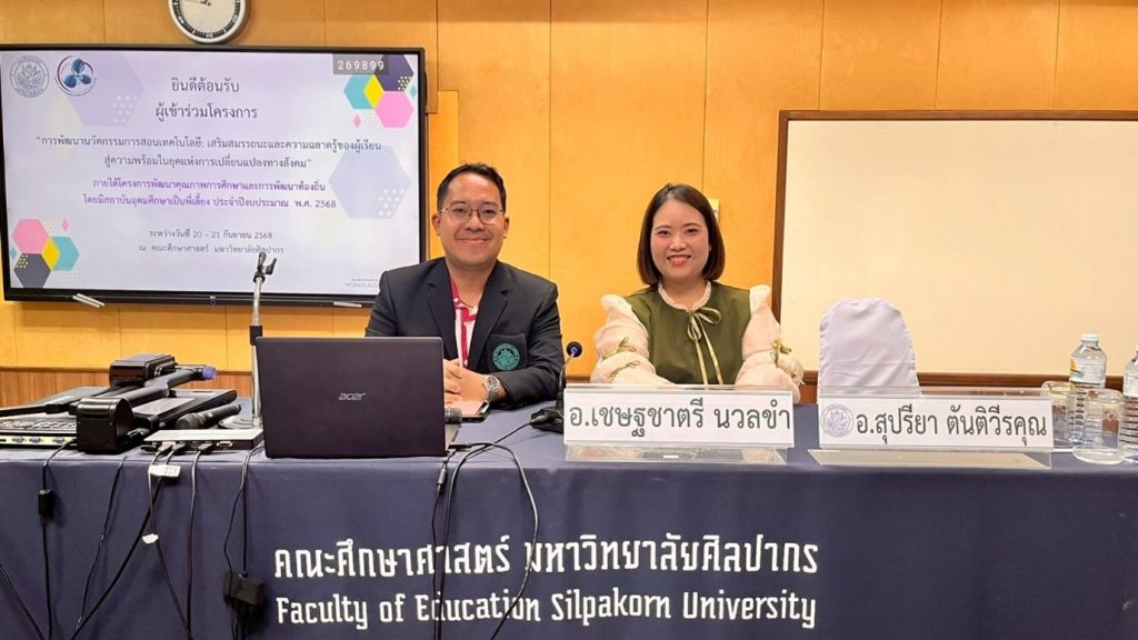 ฝ่ายงานวิจัย งานบริการวิชาการ งานแผน และงานประกันคุณภาพ คณะศึกษาศาสตร์ มหาวิทยาลัยศิลปากร ร่วมจัดโครงการ “พัฒนานวัตกรรมการสอนเทคโนโลยี: เสริมสมรรถนะและความฉลาดรู้ของผู้เรียน สู่ความพร้อมในยุคแห่งการเปลี่ยนแปลงทางสังคม” ภายใต้โครงการพัฒนาคุณภาพการศึกษาและการพัฒนาท้องถิ่น โดยมีสถาบันอุดมศึกษาเป็นพี่เลี้ยง ประจำปีงบประมาณ พ.ศ. 2568 ระหว่างวันที่ 20-21 กันยายน 2568 ณ คณะศึกษาศาสตร์ โครงการดังกล่าวจัดขึ้นด้วยวัตถุประสงค์เพื่อพัฒนาทักษะทางด้านเทคโนโลยีและนวัตกรรมการเรียนการสอนให้แก่ครูและบุคลากรทางการศึกษา